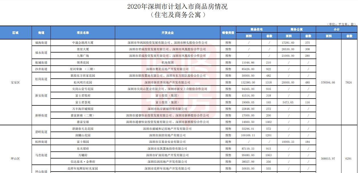 2020年深圳市已批准77个预售商品房项目