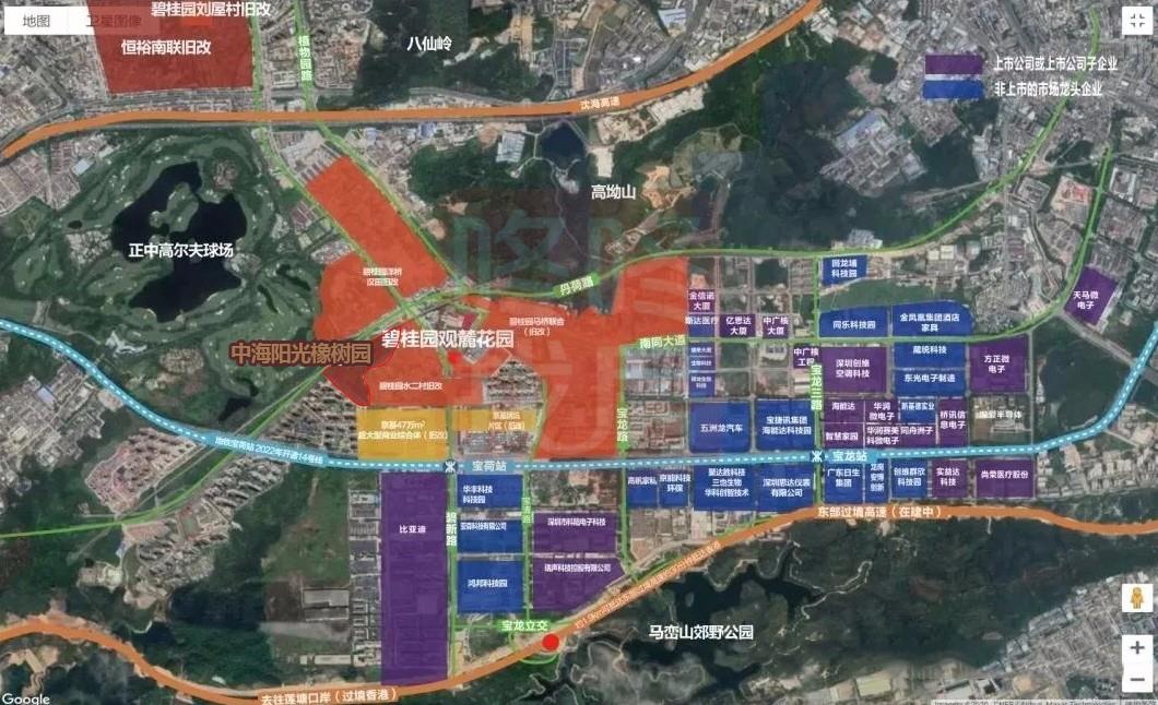 中海阳光橡树园位于龙岗区宝龙街道南约社区,宝横路与高科西路交汇处,东西两侧毗邻碧桂园水二片区更新单位及正中国际高尔夫球会。
